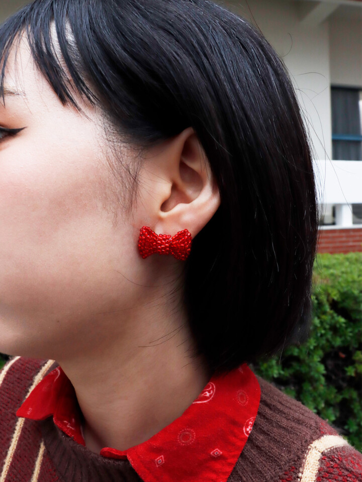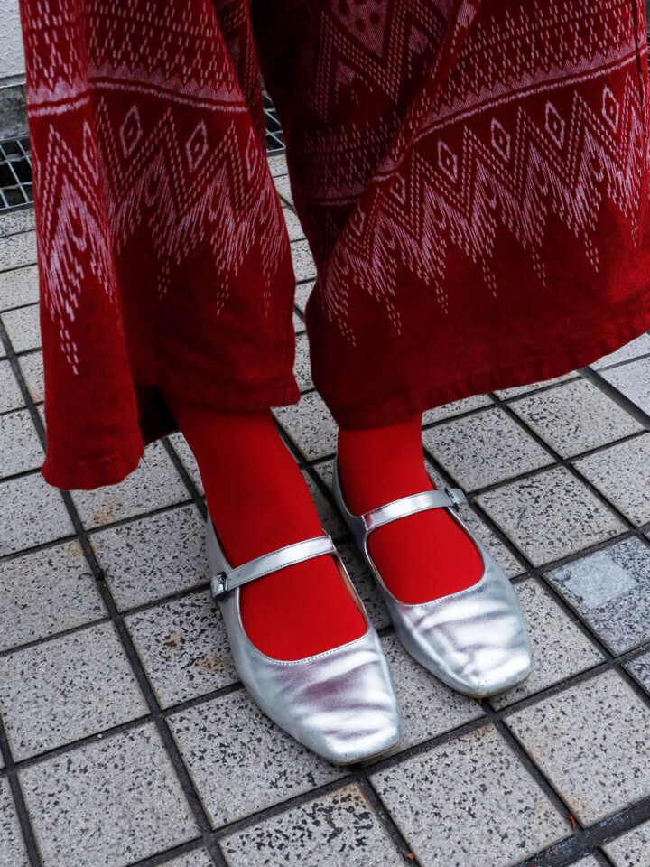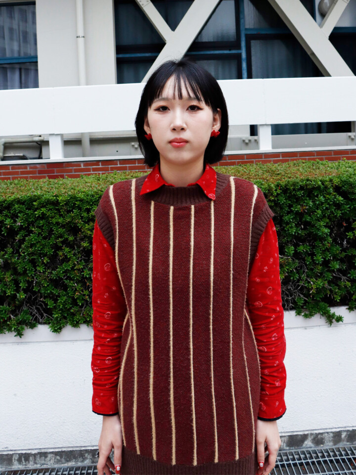 首元にアクセントを持ってきて、Iラインで落ち着かせました。