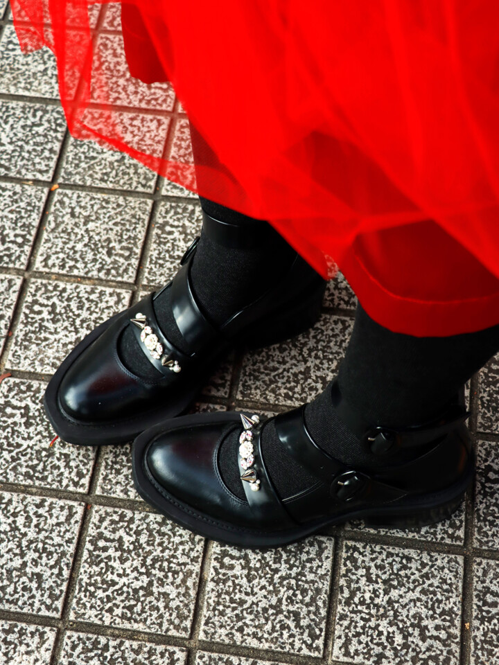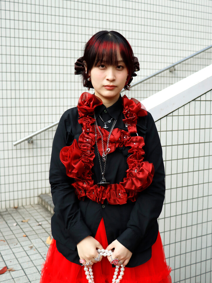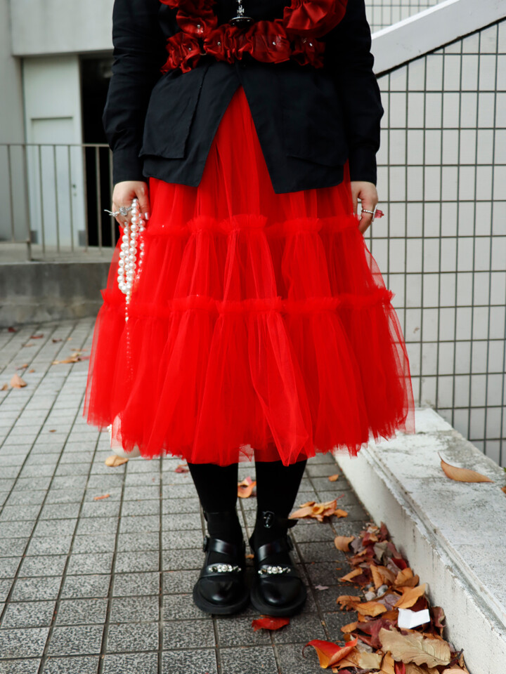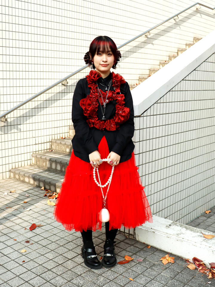 Tops:COMME des GARÇONS/Skirt: COMME des GARÇONS GIRL/Shoes:Simone Rocha/Bag:Simone Rocha/Ring:YVMIN・NO BRAND/Other:noir kei ninomiya